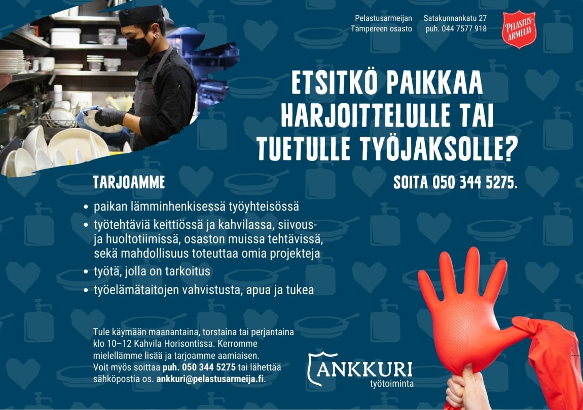 Yhteystiedot: Satakunnankatu 27, Tampere Puh. 050 470 3508 ankkuri@pelastusarmeija.fi