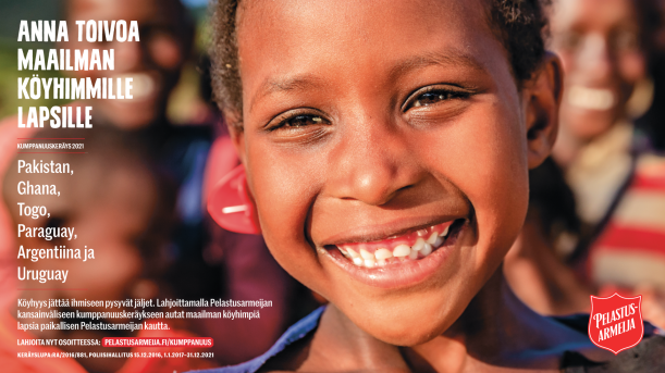 Haluamme haastaa teidät mukaan tärkeään keräykseen. Pelastusarmeijan kumppanuuskeräys toteutetaan tänä vuonna 16.3.–13.4. ja sen avulla tuetaan kansainvälisen Pelastusarmeijan paikallisesti tekemää pitkäjänteistä työtä ihmisten perustarpeiden, kuten ravinnonsaannin, terveydenhuollon ja koulutuksen parissa kohdemaissamme Pakistanissa, Ghanassa, Togossa, Argentiinassa, Paraguayssa ja Uruguayssa.
