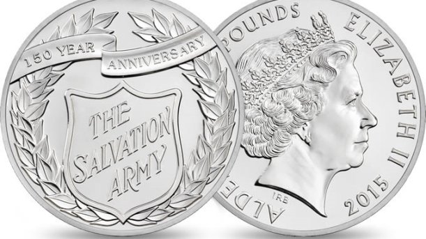 Britannian kuninkaallinen rahapaja The Royal Mint laskee liikkeelle erityisen viiden punnan kolikon Pelastusarmeijan 150-vuotisjuhlan kunniaksi.