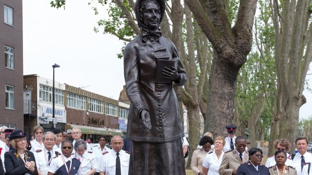 Pelastusarmeijan johtajat ympäri maailman kokoontuivat 2. heinäkuuta Pelastusarmeijan äidin Catherine Boothin patsaan paljastustilaisuuteen Itä-Lontoossa.