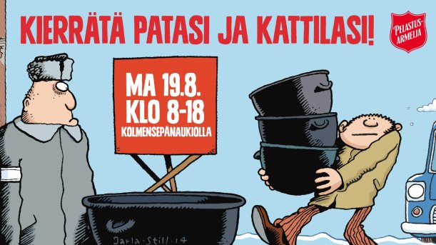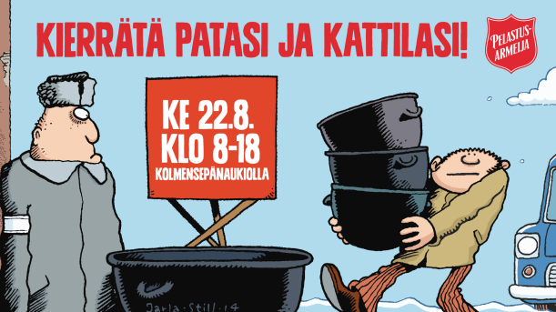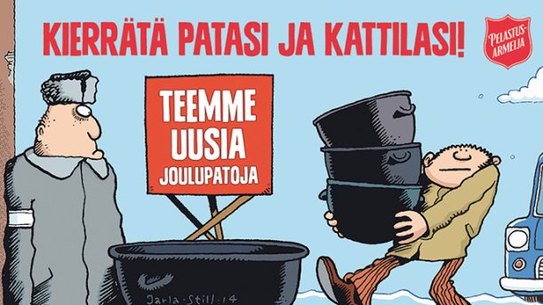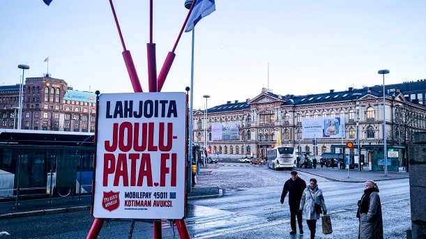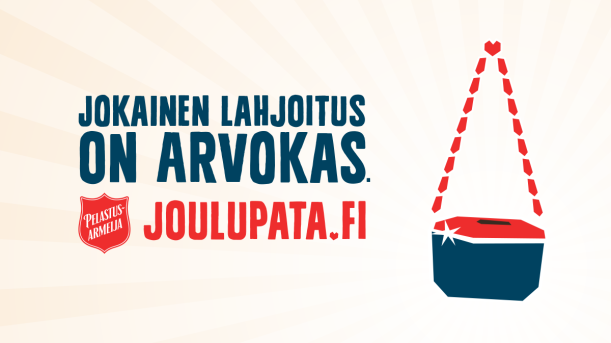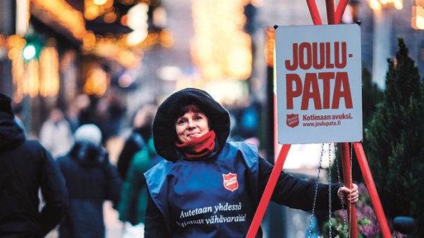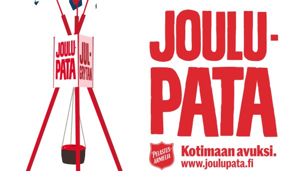 Frälsningsarméns traditionella julgrytor är ute på gatorna 13.–23 december. Penningdonationer till insamlingen kan göras redan nu på adressen joulupata.fi. Nuförtiden kommer hälften av penningdonationerna som ges via nätet.