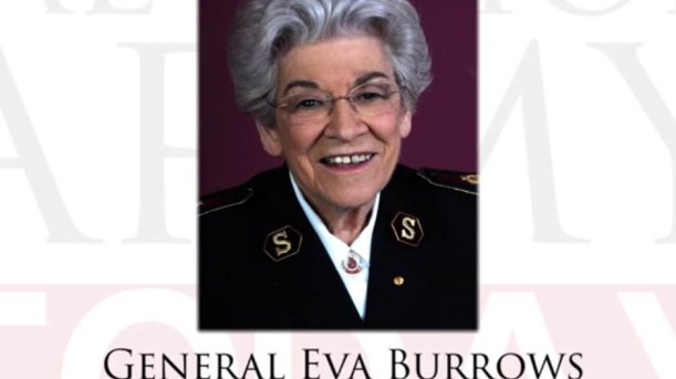 Pelastusarmeijan historian toinen naiskenraali, "Ihmisten kenraali" Eva Burrows ylennettiin kirkkauteen maaliskuun 20. päivä.
