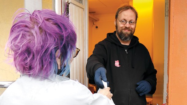 Tampereella sijaitsee Pelastusarmeijan myymälätoiminnan pohjoinen varasto. Varastomiehet, autonkuljettajat Risto Lehtomaa ja Oleg Kurgi ovat työskennelleet lukuisia vuosia varastolla, jossa on yli kolmekymmentä vuotta tehty yhteistyötä Tampereen aikuiskoulutuskeskuksen kanssa ottamalla työharjoitteluun maahanmuuttajien kielikurssin opiskelijoita. Myös Oleg on tullut työyhteyteen tätä kautta.