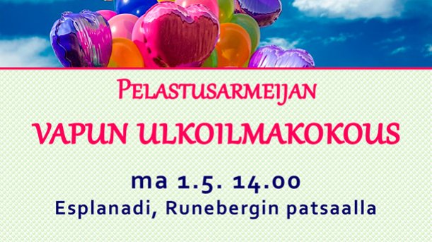 Lauantaina 18.4. klo 18. Pelastusarmeijan Temppeli, Uudenmaankatu 40, Helsinki.
