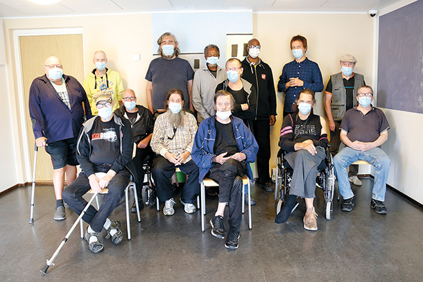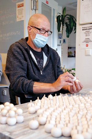 – Korona-aikaan on ollut toimitilahuoltoa eli siivousta. Meillä on kierrätystoimintaa, niin sanottu ”kirppistiimi”. He ovat laittaneet tavaroita kuntoon, tehneet korjausompelua ja puhdistustyötä. Tuotteet on sitten jaettu käyttöön. Ympäristötyötä on tehty talon läheisyydessä, ja lisäksi meillä on ollut ryhmiä, jotka ovat kiertäneet lähikortteleita roskia keräten. Samalla he ovat luoneet positiivista, edustavaa mielikuvaa talostamme ja toiminnastamme, Juha toteaa hymyillen ja jatkaa: – Alihankintatöinä Aarikan tonttujen lisäksi meillä on Saintexin heijastimien kokoamis- ja pakkaamistehtäviä. Koronatilanteen vielä helpottaessa toiveenamme on ottaa tietokone käyttöön ja mahdollistaa sisällöntuotannollinen toiminta. Pari asukastamme on jo työskennellyt lehtiartikkelin parissa.