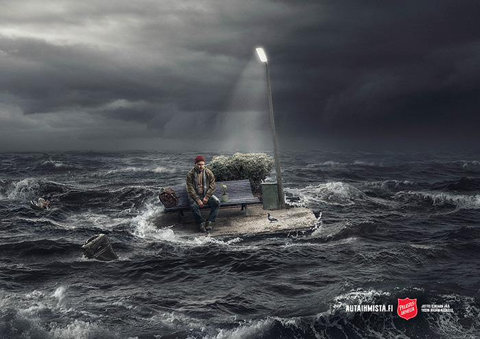 Mainoksen kuva symboloi yksin jäämisen ahdinkoa ja teksti vetoaa auttamaan, jottei kukaan jää yksin hädän keskelle.Kiitos yhteistyökumppaneillemme Make it Simpelle ja valokuvaaja Onni Wiljami Kinnuselle loistavasta luovasta työstä. Voittajat julkaistaan joulukuun puolessa välissä.