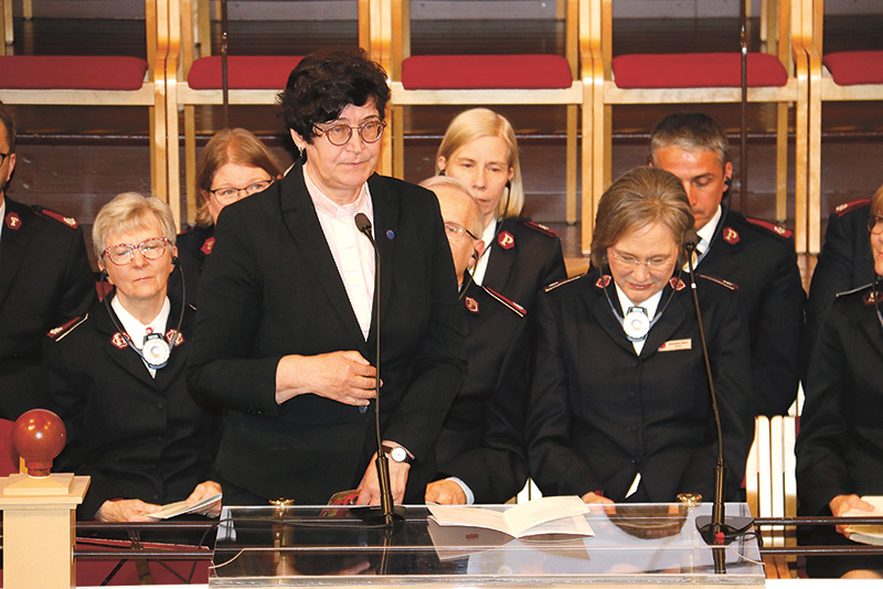 – Pelastusarmeija on hyvin mukana ekumeenisissa tapahtumissa, ja olemme saaneet teiltä aina positiivista vastakaikua. Everstiluutnantti Saga Lipon kanssa olemme tunteneet myös pitkään, ja hyvät henkilökohtaiset suhteet edistävät yhteistyötä. Pelastusarmeija on hyvin yhteistyökykyinen jäsen, ja aktiivinen niin paikallisesti, kansallisesti kuin kansainvälisestikin. Arvostan työtänne suuresti, Mayvor kiittää.