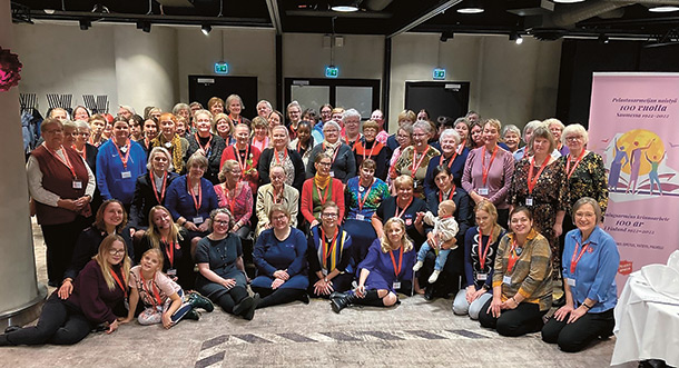 Anne-Dore on syvästi kiitollinen ja iloinen menneestä vuodesta. – Vuonna 2022 meillä oli etuoikeus juhlia Suomen Pelastusarmeijan satavuotiasta naistyötä. Vaikka resurssimme olivat aika rajalliset, saimme toteutettua monia hienoja asioita. Aloitimme maaliskuussa kansainvälisenä naistenpäivänä sosiaalista oikeudenmukaisuutta ja ihmiskauppaa koskevalla webinaarilla; meillä oli loistavia vieraita kertomassa ja keskustelemassa aiheesta. Monet osastot järjestivät tuona päivänä onnistuneita kokoontumisia ja ulkoilmatilaisuuksia. Lokakuussa vietimme ihastuttavaa 100-vuotisjuhlaa Helsingissä. Ensin oli naisten kesken Radisson-hotellissa territorion naistenpäivät, joille kokoontui yli 80 naista Suomesta ja Virosta. Seuraavana iltapäivänä juhlimme yhdessä Hedvig-päivää Temppelissä – niin naiset, miehet kuin perheet. Meillä oli myös villasukkakilpailu, johon tuli lukuisia taidokkaita töitä. Kun katsomme kotiliiton toiminnasta alkanutta naistyön historiaa Suomessa, on uskomatonta, miten sen alusta todellakin on jo sata vuotta, ja miten huomattava vaikutus sillä on ollut ja on edelleenkin naisten ja perheiden elämään! Naistyö on nykyäänkin tärkeää, ja se näkyy monin mielenkiintoisin tavoin.