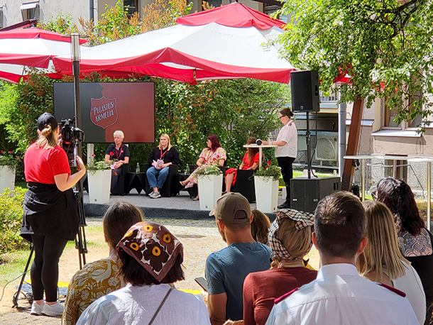 Suomi-areenan Kaupungintalon pihan lavalla keskustelua juonsi Pelastusarmeijan ylisihteeri, majuri Saga Lippo. Vilkasta ja mielenkiintoista keskustelua olivat käymässä seksologi Lotta Pihlava, Lounais-Suomen poliisilaitoksen rikosylikonstaapeli Milja Vuorio, Pelastakaa Lapset ry:n Lasten suojelun ja Nettivihjeen kehittämispäällikkö Tanja Simola ja varhaiskasvatuksen erityisopettaja, Pelastusarmeijan nykyajan orjuuden ja ihmiskaupan vastaisen työn kansallinen yhteyshenkilö Sari Vanha-Perttula.