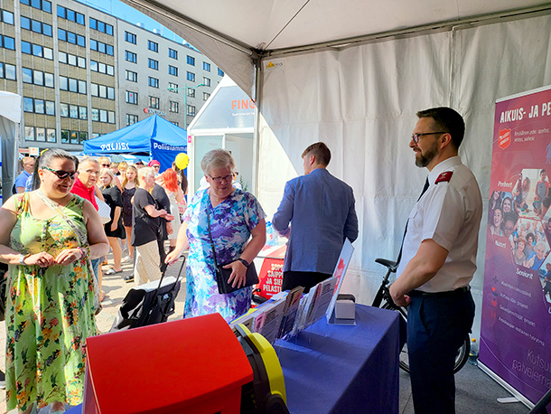 Pelastusarmeija esittäytyi viikon aikana myös Suomi-areenan Kansalaistorilla. Ihmisiä vieraili teltalla runsaasti, ja Pelastusarmeijan esilläolo työnantajana herätti kiinnostusta ja synnytti hyviä keskusteluja. Ihmiset olivat kiinnostuneita myös paikallisesta toiminnastamme, ja useampi esitti toivomuksen, että Pelastusarmeijan myymälä palaisi Poriin.