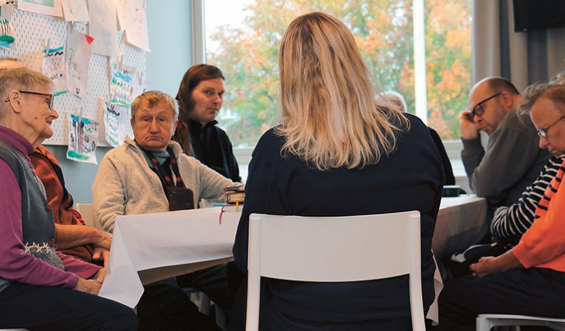 Iltapäivän keskustelupiiri on alkamassa. Odotellessamme juttelen Vladimirinkanssa. Hänellä on ollut mielenkiintoinen elämä. Vladimir on syntynyt Virossa, asunut Venäjällä, Ukrainassa ja Tadžikistanissa, ja asuu nyt viidettä vuotta Haaparannassa: – Minulle oli vaikeaa olla kommunistisessa yhteiskunnassa, sillä en koskaan kokenut olevani ateisti. Jumala on aina ollut läsnä. Täällä osastolla saan kaiken, mitä tarvitsen hengellisesti.
