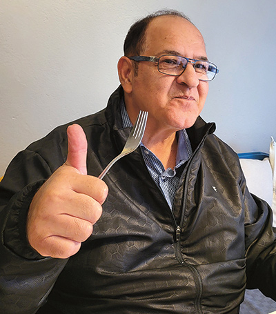 Aleksi lähettää kiitokset keittiön suuntaan: – Nämä tytöt ovat tehneet oikein hyvää ruokaa!