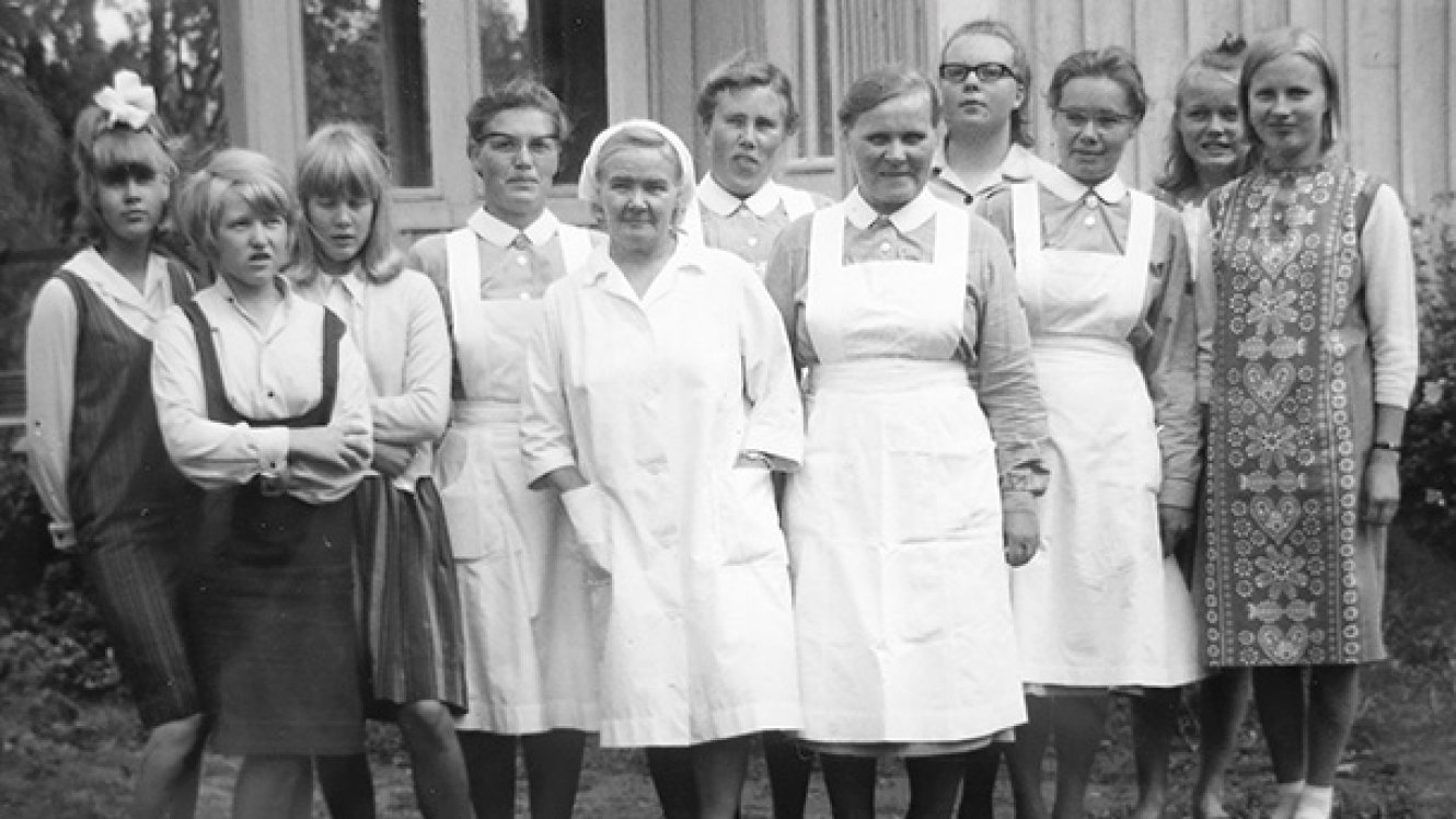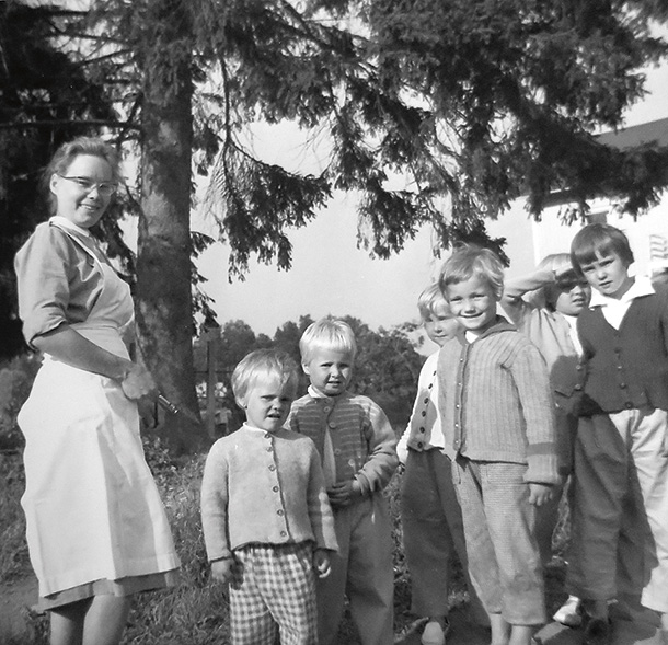 – Jännitin haastattelua, mutta se sujui hyvin, ja sain kesätyöpaikan kymmeneksi viikoksi. Leirien alkaessa kesäkuun alussa menin Pelastusarmeijan Castréninkadun osaston eteen, jossa olikin jo lapsia vanhempineen tai huoltajineen odottamassa kuljetusta. Lapsia oli kaikkiaan 90! Muistan, miten olin hankkinut työasuksi Marimekosta sinisen mekon, ja toisena asunani oli itse ompelemani hame ja pusero.
