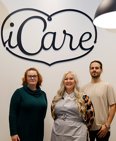 Kello on kymmenen, ja ensimmäiset asiakkaat pääsevät tutustumaan uuteen iCare-myymälän. Innostunut ilmapiiri välittyy niin asiakkaista kuin henkilökunnastakin.