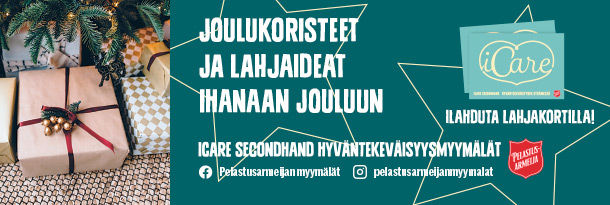 iCare secondhand hyväntekeväisyysmyymälöihin on saapunut myös jouluun mainiosti sopiva uutuus – lahjakortit. Lahjakortin voi ostaa haluamalleen summalle kymmenestä eurosta lähtien. Saldon voi käyttää useammalla ostokerralla. Lahjakorttia ei ole myöskään sidottu yhteen myymälään, vaan se käy kautta Suomen.