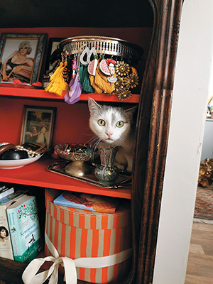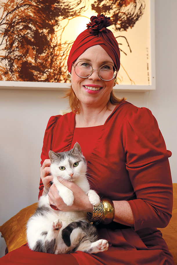– Suurin on Marlene Dietrich. Hänellä oli usein turbaani, ja rakastan turbaaneja! Esikuvani edustavat monia vuosikymmeniä ja tyylejä, pidän esimerkiksi Marilyn Monroesta, Grace Jonesista ja Joan Collinsista. Tykkään yhdistellä eri vaikutteita. 30- ja 40-luku kiehtoo minua valtavasti, mutta vaatekaapistani löytyy myös paljon 80-luvun vaatteita. Mielestäni 80-luvun olkatoppaukset ovat oikopolku art decon maailmaan. Berliini on yksi suosikkikaupungeistani, olen käynyt siellä 13 kertaa. Paikalliset vintageputiikit ovat oikeita aarreaittoja. Rakastan myös Pariisia ja sen vuosisadan takaista tunnelmaa. Olin siellä ensi kertaa viettäessäni neljäkymppisiäni, ja minusta tuntui kuin olisin tullut kotiin. Tunsin yhteenkuuluvuutta kaupungin kanssa.