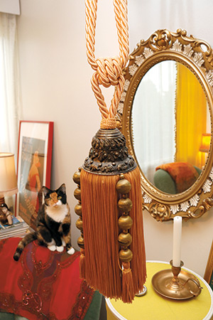 – Minulla on myös paljon tädiltäni saamiani juttuja, kuten tarjottimia ja tupsuja. Lisäksi vinyylilevyt ovat minulle hyvin rakkaita, rakastan muun muassa Marlene Dietrichiä, Edith Piafia, Carmen Mirandaa ja Billie Holidayta.
