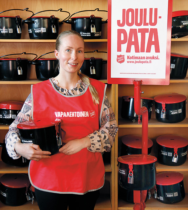 Tapaamme Heidi Saarelan kanssa Vantaalla sijaitsevalla joulupatavarastolla – täällä on pata poikineen! Siististi asetelluissa riveissä ne odottavat pääsyä kaduille ja kauppakeskuksiin… mikä tapahtuukin jo pian, vajaan kuukauden päästä tämän lehden ilmestymisestä. Heidille 2022 on toinen vuosi joulupatakoordinaattorina. Ensimmäinen vuosi oli työläs, mutta meni haasteista huolimatta mallikkaasti.