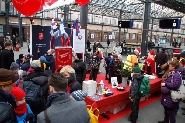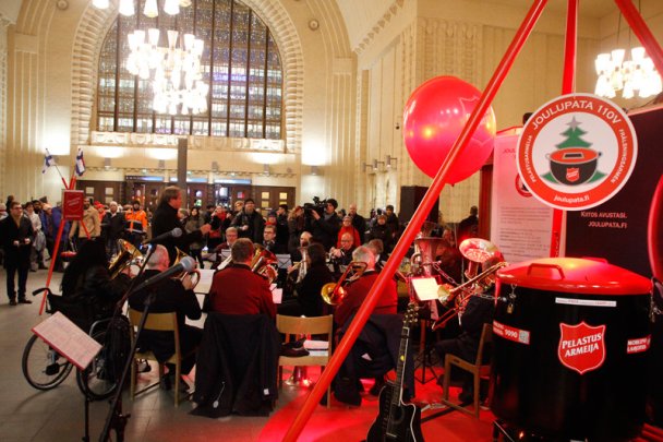 Joulupatakeräyksen avaus pidettiin Helsingin Rautatieasemalla eilen.