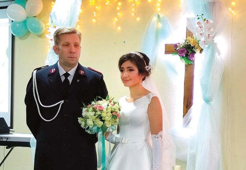 – Vietimme päivän yhdessä. Kävelimme tuntikausia kaupungilla ja esittelin hänelle nähtävyyksiä, taidegallerian ja jokirannan. Hyvästelin hänet, ja yhteys katkesi. Brengle-kurssilla tapasimme uudelleen. Hän kertoi Facebook-julkaisussaan olevansa Moldovassa. Laitoin viestiä ja kysyin, mitä kuuluu. Kolme päivää myöhemmin hän vastasi: ”Kerron, kun tapaamme…” Menimme kahville ja juttelimme. Kotimatkalla hän sanoi, että Jumala on kertonut, että minusta tulee hänen vaimonsa. Keskustelimme monista kysymyksistä. Seuraavana päivänä annoin hänelle jo suostumukseni, ja sitä seuraavana hän matkusti äitini luo pyytämään lupaa ja siunausta liitollemme, Olga muistelee onnellisuutta säteillen.