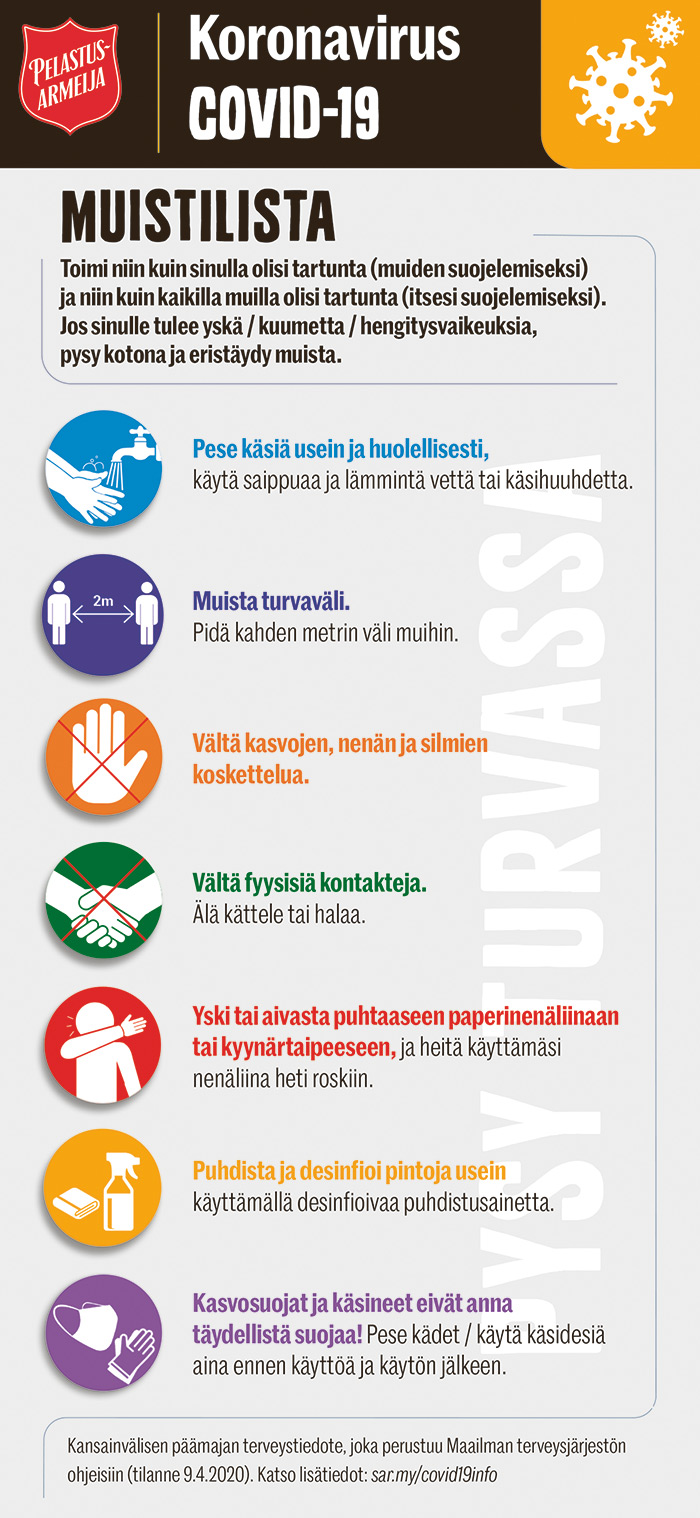 Moni on pohtinut viime kuukausien aikana, mikä merkitys kristillisellä uskolla, hengellisellä vakaumuksella, rukouksella ja Jumalaan turvautumisella on tällaisen yleismaailmallisen kriisin aikana. Meillä varmasti olisi paljonkin kerrottavaa tästä. Yleiset ja yksityiset rukoustuokiot yhdessä tai yksin ovat olleet monelle todellisia voiman paikkoja, jotka ovat antaneet lohdutusta. Moni on iloinnut Pelastusarmeijan läsnäolosta internetissä ja sosiaalisessa mediassa, seurakuntien ja kristillisten yhteisöjen ”digiloikasta”, joka on mahdollistanut toivon sanoman esilläpidon aikana, jolloin fyysinen kokoontuminen ei ole ollut mahdollista. Tiedän myös ihmisiä, jotka ovat saaneet paljon jaksamista hengellisestä musiikista.