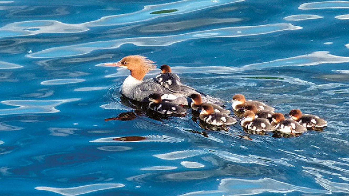 Seuraavana päivänä kuulimme, kuinka koskelopariskunta liikkui laiturin lähellä. Ne näkivät poikasen ja yrittivät äänekkäästi krotkottaen lähestyä sitä. Mutta poikanen ei tunnistanut oikeita vanhempiaan vaan hätääntyneesti piipittäen ui pakoon ja hakeutui turvaan lenkkarin sisään. Tämä toistui useita kertoja, kunnes jouduimme poistamaan turvapaikan ja pakottamaan poikasen vesille. Tarinalla on onnellinen loppu, sillä monen yrityksen jälkeen poikanen lopulta lähti aikuisten koskeloiden matkaan, ja myöhemmin näimme sen uimassa perheensä seurassa. Ei olisi meistä ihmisistä ollut koskelonpoikasta kasvattamaan aikuiseksi koskeloksi.