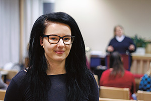 Kuoro harjoittelee laulua Herra, en ole yksin (Pelastusarmeijan laulukirja 56) liikkuen piirissä ympäri salia, kun nappaan harjoitusten kuopuksen, 27-vuotiaan Henna Säyriön juttusille. Henna huomasi syksyllä kuoromainoksen osaston facebook-sivulla.