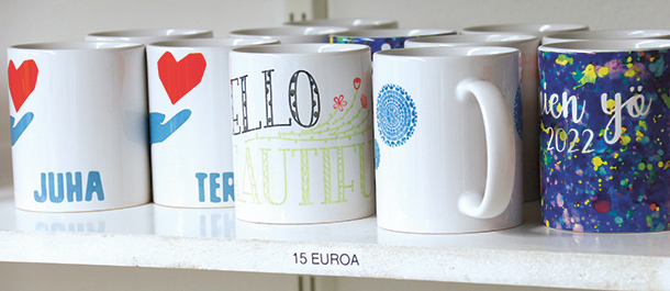 – Meillä on muun muassa tuotepaja, jossa painamme mukeja ja paitoja. Ajatuksena on kehittää omia tuotteita, joita pystyisimme myymään laajemminkin, Leif kertoo. – Työtoiminnan alla tapahtuu monenlaista mielenkiintoista. Tällä hetkellä meillä on kuntouttavassa työtoiminnassa henkilö, joka on kouluttautunut vertaistyöntekijäksi. Hän käy pitämässä ryhmiä päihteettömästä elämästä.