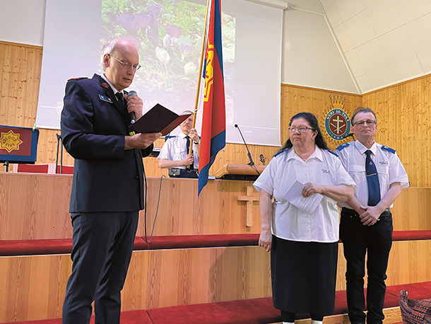 – Liittolupauksen antaminen oli tärkeä hetki elämässäni. Poikani ja hänen puolisonsa lapsineen olivat paikalla katsomassa, kun heidän mumminsa lupasi palvella Jumalaa. He saivat omin silmin ja korvin tutustua Pelastusarmeijan toimintaan, mikä tuntui minusta kerrassaan upealta. Ehkäpä haastavinta liittolupauksessa on edellytys pitää aktiivisesti esillä Jumalan sanaa. Minulle luontevinta on tavoitella sellaista elämää, joka jo itsessään kirkastaa Jumalaa. Vastaan kyllä Jumalaa koskeviin kysymyksiin, kun joku niitä minulle esittää.