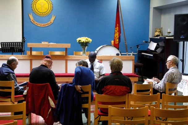 Syksy on saapunut Hyvinkäälle – piha on täyttynyt keltaisista lehdistä ja ilmassa tuntuu viileä kirpeys. Maanantaiaamun lämpöisenä turvapaikkana toimii Pelastusarmeijan Hyvinkään osasto, jossa avoimet ovet ovat alkamassa. Oven taakse on jo kerääntynyt pieni jono, kun siviilijäsen Ylle Kekäläinen tule avaamaan lukon.