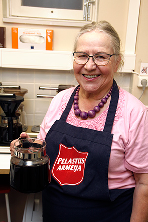 – Tulin uskoon asuessani Englannissa reilu vuosikymmen sitten. Kun muutin Suomeen, en löytänyt paikkaani. Uskossani seurasi ”kylmä kausi”. Sattumalta törmäsin Pelastusarmeijaan tuodessani vaatelahjoitusta. Minut kutsuttiin mukaan hartauteen. Sanoma kolahti täysillä – se oli niin tämän päivän asiaa! Pelastusarmeija tarjosi paikan, jossa Jumala-suhdetta pystyi jälleen lämmittämään. Kipinä syttyi uudelleen, ja nyt olen palavasti mukana!