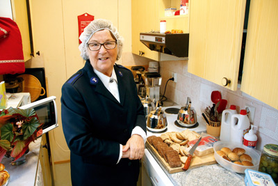 Pimeys on jo laskeutunut Rauman ylle ja keltaisen puutalon ikkunoista säteilee lämmin valo. Koputan ovelle ja sotilas Anne Saarinen päästää minut sisälle, hymy huulilla ja kahvipannu kädessä. Järjestelyt illan kokousta varten ovat jo täydessä vauhdissa. Anne viimeistelee kahvipöydän antimia ja muutamia osaston aktiivijäseniä on kokoontunut kahvisalin puolelle pitämään pientä rukoushetkeä.