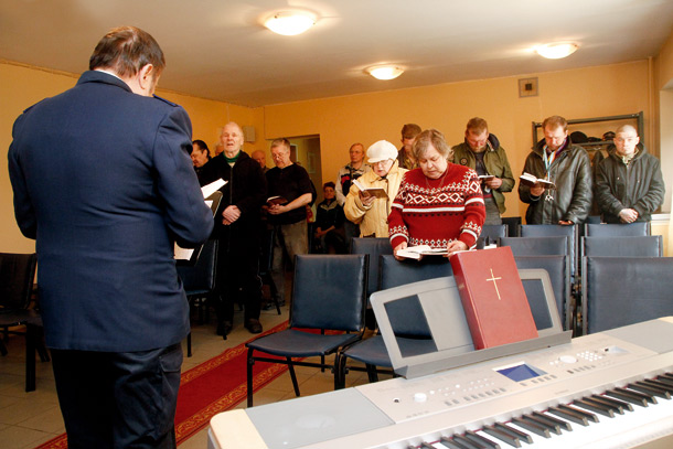Parisenkymmentä ihmistä on kokoontunut osaston penkeille istumaan. Harmaatukkainen vanhempi herrasmies innostuu kuullessaan minun olevan Suomesta, ja esittää pitkän, kauniin runon suomeksi. Pelastussotilas Tõnu Urb taputtaa miestä toverillisesti olalle ja siirtyy johtamaan aamun hartautta. Tõnu muistuttaa kuulijoita, että Viro on Baltian maista ateistisin. Jumalan johdatusta tarvitaan.