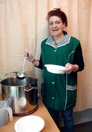 – Käyn täällä soppakeittiöllä laittamassa ruokaa ja siivoamassa, se on vähän kuin harrastukseni. Arvokkaimmat hetket ovat, kun koditon ihminen tulee pyyteettömästi kiittämään ruoasta – se on arvokkaampaa kuin mikään rahasumma maailmassa, Anneli toteaa lämpimästi hymyillen, samalla keittoa hämmentäen.
