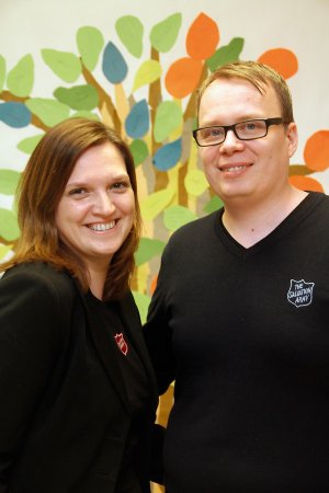 Päivärukouksen päätyttyä pysähdymme keskustelemaan osaston upseerien Natalia ja Toni Penttisen kanssa osaston kuulumisista. Juuri päättynyt päivärukous on heille mieleinen hetki.