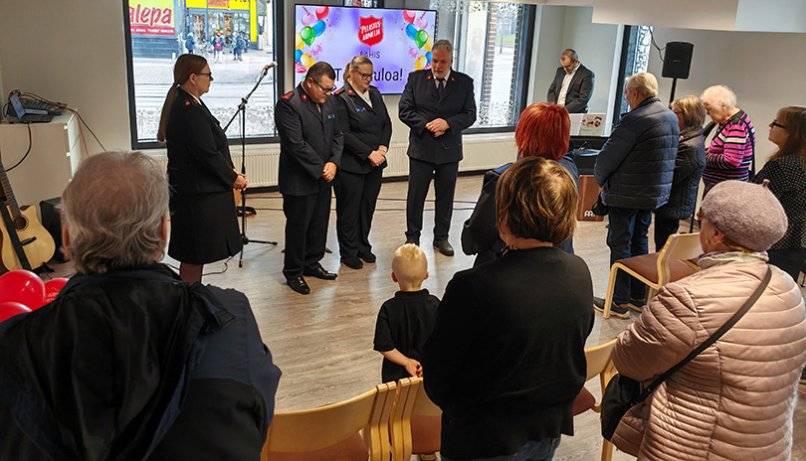 Perjantaina 8.11. Vuosaaressa oli iloinen tunnelma Lähiksen avatessa virallisesti ovensa. Pelastusarmeijan johtajat, everstiluutnantit Saga Lippo ja Esa Nenonen leikkasivat nauhan juhlallisesti. Tervetulosanoissaan he muistuttivat, että juuri tänä päivänä 135 vuotta sitten Pelastusarmeija aloitti toimintansa: – Kaupunki laajenee, ja olemme iloisia, että olemme saaneet nyt oman paikan tänne Vuosaareen.