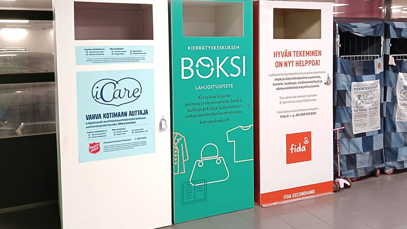 Uudet, kauppakeskuksista löytyvät iCare-keräyslaatikot tekevät hyväntekeväisyydestä helppoa – kauppareissulla lahjoitustavarat voi jättää parkkihallista löytyvään laatikkoon.