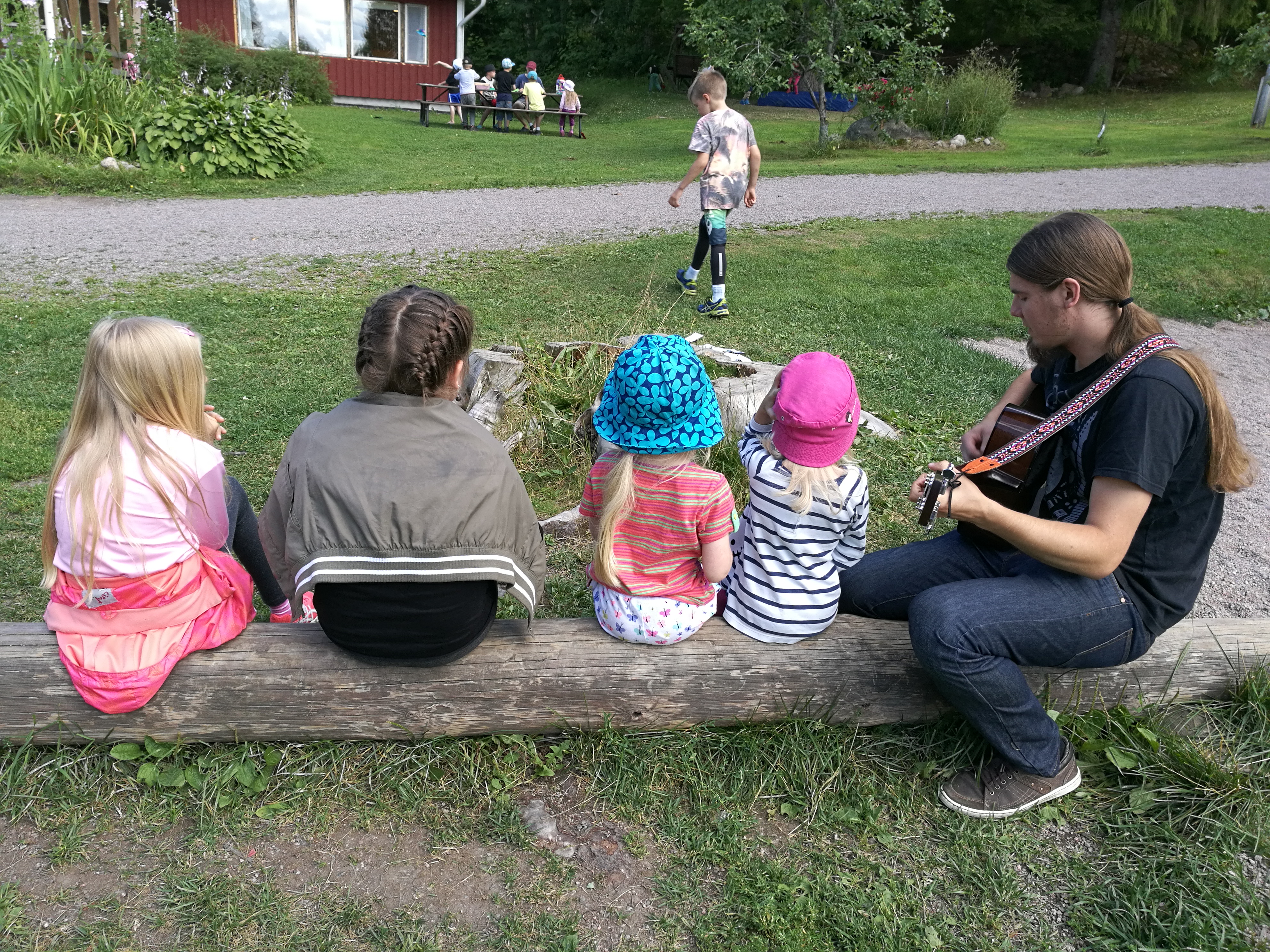 Kuva 1. Tuomaksen kanssa sävelletään ja sanoitetaan uusia leirilauluja.