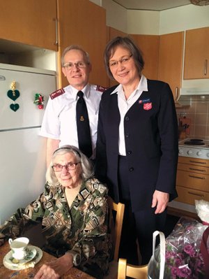 Pari vihittiin lipun alla täydessä Temppelissä elokuussa 1944. Heidän ensimmäinen yhteinen määräyksensä alkoi vuodenvaihteessa Porvoon osastossa. Pelastusarmeija oli ”avannut tulen” Porvoossa vuonna 1890, ja yksi osaston ensimmäisistä sotilaista oli muurarimestari Karl Johan Wahlström, Jallen isoisä.