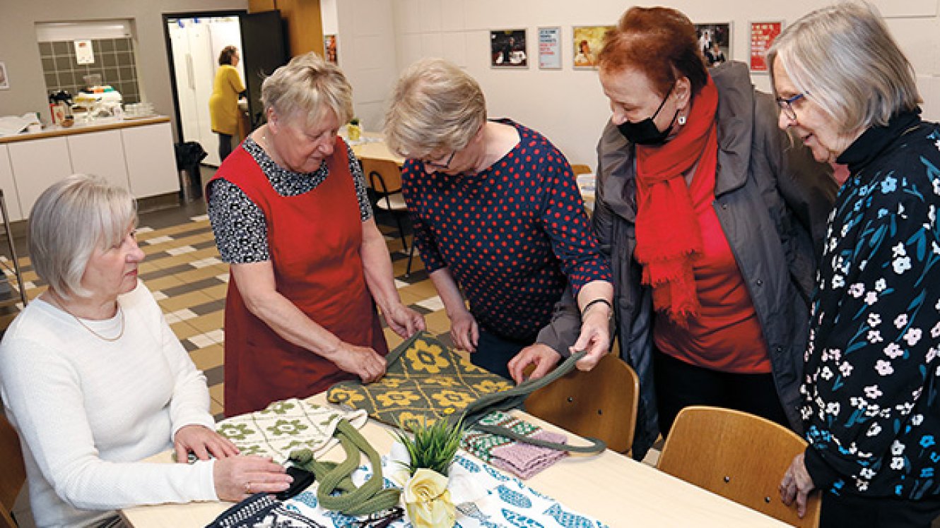 Vaikka kyse on käsitöistä, siihen saa osallistua myös muutoin. – Olemme kaikki Luojan luomia, se riittää... Ei ole pakko luoda mitään käsin, Metti naurahtaa. Tällä hetkellä ryhmä valmistaa tuotteita – sukkia, kaulureita ja kasseja – syksyn myyjäisiin.