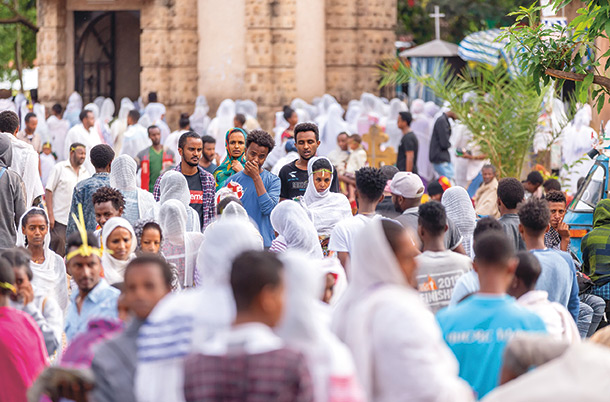 Etiopiassa melkein puolet väestöstä on ortodoksikristittyjä, joten pääsiäistä juhlitaan ortodoksitapojen mukaisesti. Kulkueita ja juhlintaa on ympäri pääkaupunki Addis Abebaa sekä kautta maan – missä vain pienikin kirkko tai tšasouna (ortodoksinen rukoushuone) sijaitsee.