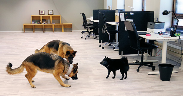 Koirat ovat kulkeneet Katariinan mukana töissä jo vuosikymmenen ajan.