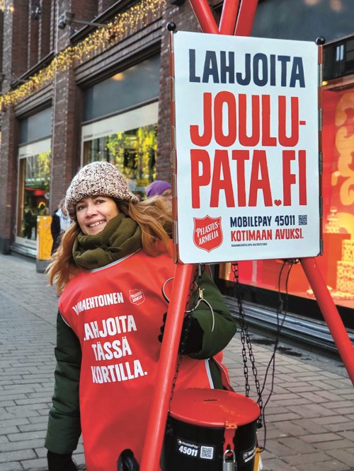 Padat kuuluvat edelleen jouluiseen kaupunkikuvaan. Fyysisten joulupatojen rinnalle on tullut muita lahjoitustapoja, kuten verkkolahjoitus ja MobilePay. Halukkaat voivat perustaa verkossa myös oman padan, johon voi innostaa ystäviään tai työ- ja harrastusyhteisöjään yhdessä lahjoittamaan. Kuvassa on iloinen patavahti Helsingin Stockmannin joulupadalla viime jouluna.