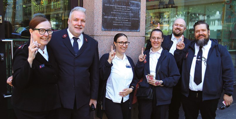 Nyt Pelastusarmeijan Suomen ja Viron territorion ylin johtaja on territorion komentaja, everstiluutnantti Saga Lippo. Hän on ensimmäinen suomalainen Pelastusarmeijan johtaja kolmeen vuosikymmeneen. Kuvassa territorion johtajat, everstiluutnantit Saga Lippo ja Esa Nenonen upseerien kanssa Pelastusarmeijan ensimmäisen kokouksen muistolaatan luona Helsingin Hakaniemessä.