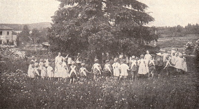 Pelastusarmeija on järjestänyt lapsille kesälomatoimintaa vuodesta 1907 alkaen. Ensimmäinen kesäsiirtola perustettiin Helsingin Pitäjänmäelle, ja pari vuotta myöhemmin saatiin siirtolat Viipuriin ja Helsingin Mustikkamaalle. Vähitellen siirtoloita avattiin muiden kaupunkien yhteyteen. Nummelan lomakoti aloitti toimintansa vuonna 1914. Kuvassa lapset leikkimässä ”mummokuusen” ympärillä tuona ensimmäisenä kesänä.