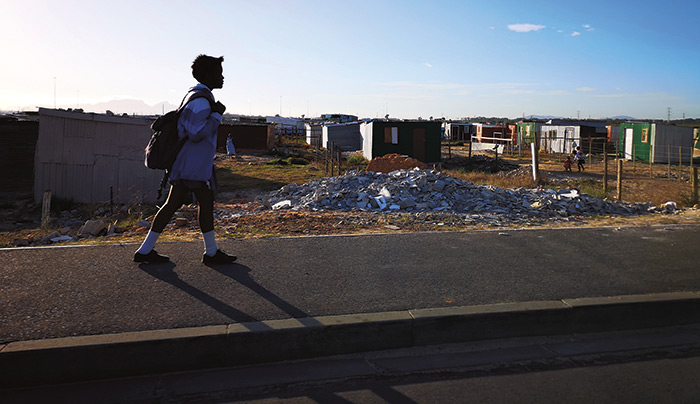 Yksi matkani pysäyttävimmistä näyistä oli Kapkaupungin lentokentän laidalla levittyvä Khayelitsan epävirallinen asuinalue, aaltopellistä ja jätepuusta rakennettu hökkelikylä. Vajaan 40 km2 kokoisella alueella asuu miltei 400 000 asukasta hyvin alkeellisissa oloissa. Veden saanti on riippuvainen kaupungin säiliöautojen vierailuista, käymälöitä on alueen laitamilla kourallinen, ja sähköt on vedetty hengenvaarallisilla, laittomilla virityksillä. Asukkaista 98 % on mustia, monet muista maista tulleita pakolaisia. Mainitsen Barrylle tästä ja hän myöntää, että kolonialismin ja apartheidin jäljiltä taloudellinen epätasa-arvoisuus on suurta.