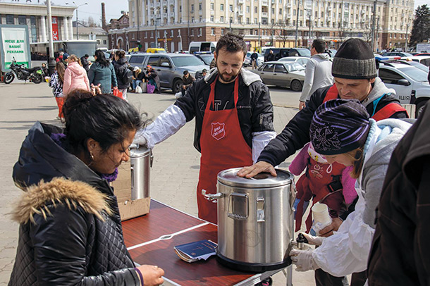 Juuri nyt kansainvälisen Pelastusarmeijan joukot Ukrainassa auttavat suurta määrää turvaa etsiviä ja kotinsa pakon edessä jättäneitä. Annamme tukea väestölle erittäin epävarmassa tilanteessa tarjoamalla ruokaa, juomaa, peittoja, majoitusta, suojaa ja henkistä apua.