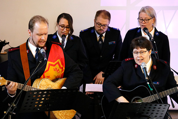 Tilaisuus päättyy lauluun ”Isä meidän”. Ylisihteeri, majuri Saga Lippo johdattaa viimeisen laulun äärelle ja sulkee kauniin kokouksen rukoukseen ja siunaukseen.