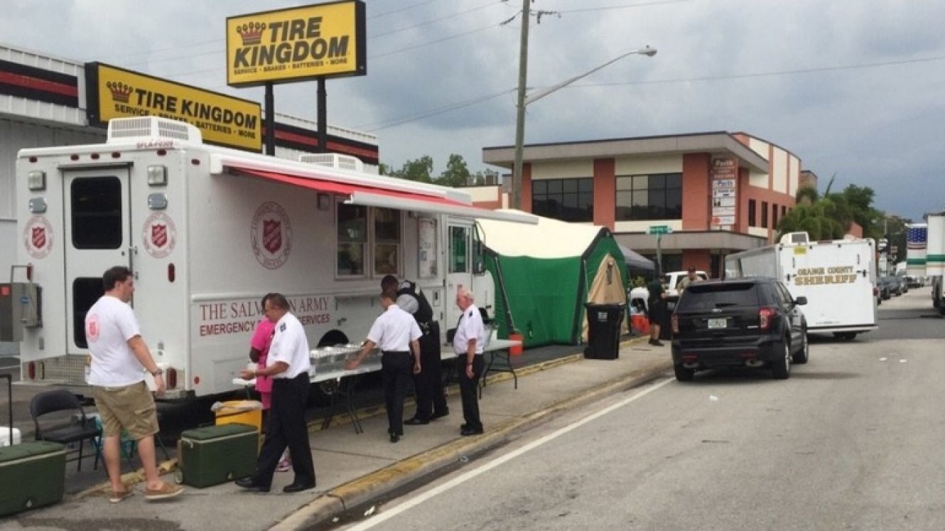 Pelastusarmeija on lähettänyt kenttäkeittiöitään jakamaan ruokaa ja juomaa pelastustyöntekijöille Orlandossa.