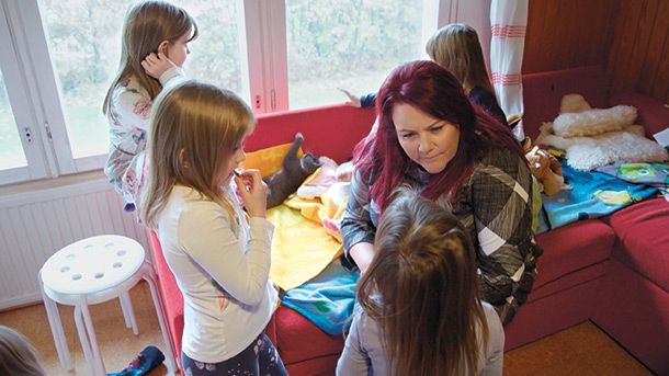 – Tämä on todella vastavuoroista. Tapaan perheet ensimmäisen kerran, kun pimputan ovikelloa ja he avaavat minulle oven. Se, että he ovat kutsuneet minut kotiinsa, on aivan valtava luottamuksen osoitus. Haluan osoittaa heille, ettei kyse ole siitä, että perhetilanne olisi huono tai he olisivat epäonnistuneet vanhempina. Katsomme vain asioita, jotka kaipaavat korjausta. Jo viidessä minuutissa saamme paperille pitkän listan asioista, jotka ovat hyvin perheessä. Sitten käymme läpi, missä kohdin he tarvitsevat apuani vanhemmuuden roolissaan. Kun saan nähdä ja kuulla, millainen on tämän päivän perhemalli Suomessa, se on minulle valtavan arvokasta. Omasta äitiydestäni pienten lasten äitinä on jo parikymmentä vuotta, ja maailma on tässä ajassa muuttunut suuresti. Pääsen kuulemaan, mitkä ovat tämän ajan perheen prioriteetit. Opin aina uutta.